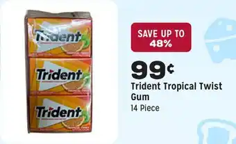 In which store will Tropical Twist Gum be on sale next week? These are some of the questions we get asked a lot. It’s only normal, nobody likes to pay too much! Our team keeps an eye on all deals and lists them online as soon as possible. So you can customize your (shopping) list with this week's offers and those of next week. Make sure to check next week’s Grocery Outlet ad, some of the specials are only available next week or online.Frequently asked questions about Tropical Twist Gum