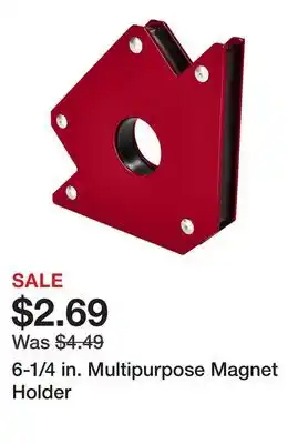 In which store will 6-1/4 in. Multipurpose Magnet Holder be on sale next week? These are some of the questions we get asked a lot. It’s only normal, nobody likes to pay too much! Our team keeps an eye on all deals and lists them online as soon as possible. So you can customize your (shopping) list with this week's offers and those of next week. Make sure to check next week’s Harbor Freight Tools ad, some of the specials are only available next week or online.Frequently asked questions about 6-1/4 in. Multipurpose Magnet Holder