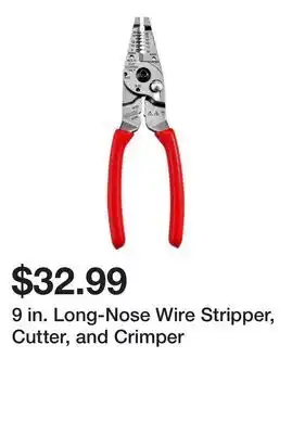 This offer is available in various stores, view all products to get the cheapest 9 in. Long-Nose Wire Stripper, Cutter, and Crimper. If you'd like to find out whether this product has a bigger discount in another store, check the category 'DIY'. You may also find these offers interesting: 7 Wire Stripper, Lil' Ripper Stripper & Wire Mesh Skimmer.
