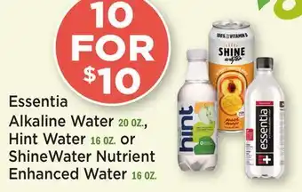 Essentia Alkaline Water 20 OZ., Hint Water 16 OZ. or ShineWater Nutrient Enhanced Water 16 OZ Discount at Heinen's