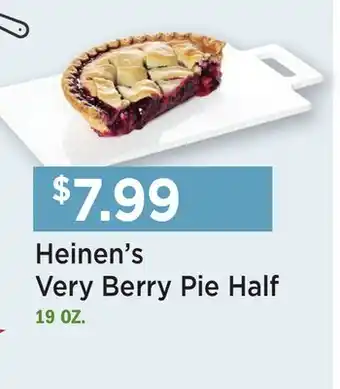 Heinen's offers a wide collection of products, besides the Heinen's Very Berry Pie Half. Keep an eye on the weekly weekly ad to find the best offers and promotions. Besides Heinen's Very Berry Pie Half, you can also find the following offers: Heinen's Half & Half, Half Blueberry Pie & Berry Keepers.
