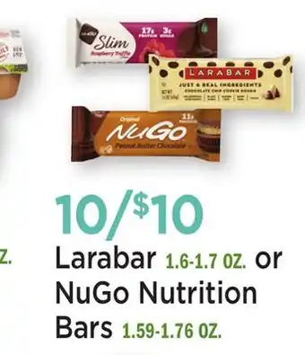 Larabar 1.6-1.7 OZ. or NuGo Nutrition Bars 1.59-1.76 OZ deals and online offers from the current Heinen's weekly ad