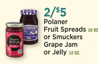 Polaner Fruit Spreads 10 OZ. or Smuckers Grape Jam or Jelly 12 OZ