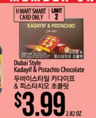 The price of Dubai Style Kadayif & Pistachio Chocolate can be found at the top of the page, together with the dates during which the offer is available. You can also check the price in the current Hmart weekly ad or on the Hmart website. Promotional offers assure you of buying Hmart products at the lowest price.