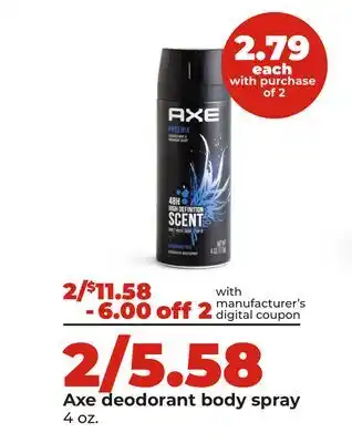 Hy-Vee offers a wide collection of products, besides the Axe deodorant body spray. Keep an eye on the weekly Hy-Vee weekly ad to find the best offers and promotions. Besides Axe deodorant body spray, you can also find the following offers: ANY Axe Body Spray or Deodorant, AXE Deodorant & Degree Whole Body Deodorant Spray.