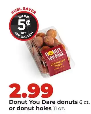 Donut You Dare donuts 6 ct. or donut holes 11 oz offers and online specials, straight from the current Hy-Vee ad
