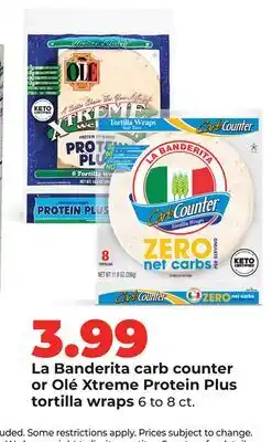 La Banderita carb counter or Olé Xtreme Protein Plus tortilla wraps deals and online offers from the current Hy-Vee weekly ad