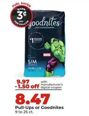 Pull-Ups or Goodnites deals and online offers from the current Hy-Vee weekly ad