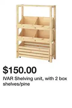 IVAR Shelving unit, with 2 box shelves/pine