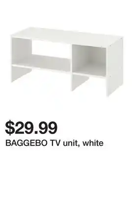 Current BAGGEBO TV unit, white deal at Ikea from 13-01 until 19-01.
