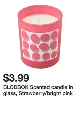Current BLODBOK Scented candle in glass, Strawberry/bright pink deal at Ikea from 10-02 until 16-02.