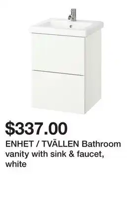 Current ENHET / TVÄLLEN Bathroom vanity with sink & faucet, white deal at Ikea from 13-01 until 19-01.