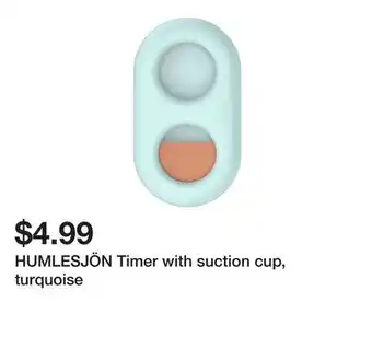 Current HUMLESJÖN Timer with suction cup, turquoise deal at Ikea from 27-01 until 2-02.