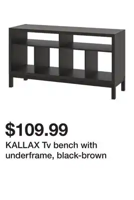 This KALLAX Tv bench with underframe, black-brown is now on sale at Ikea. Make sure to check out the current Ikea leaflet, full of competitive deals and discounts. Purchase KALLAX Tv bench with underframe, black-brown online via Ikea website or buy it for the best available price at a store near you. Adspecials.us always gathers the best KALLAX Tv bench with underframe, black-brown offers, especially for you. Do you want to be the first one to be informed? Click on the bell icon and receive a free message when the product is on offer or available on the flyer.Is there a promotion on KALLAX Tv bench with underframe, black-brown in next week’s Ikea ad?