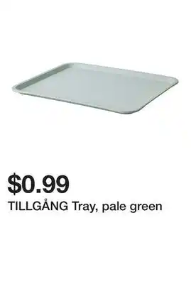 Current TILLGÅNG Tray, pale green deal at Ikea from 17-02 until 23-02.