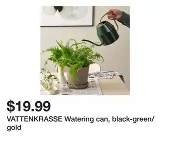 Current VATTENKRASSE Watering can, black-green/gold deal at Ikea from 24-02 until 2-03.