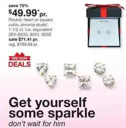 Round, heart or square cubic zirconia studs‡, 1-1/2 ct. t.w. equivalent