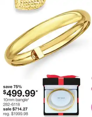 This offer is available in various stores, view all products to get the cheapest 10mm bangle‡. If you'd like to find out whether this product has a bigger discount in another store, check the category 'Department Stores'. You may also find these offers interesting: Made In Italy 14kt Gold Stationed Rose Bangle Bracelet, offer 2 & offer 3.