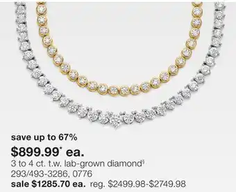 The price of 3 to 4 ct. t.w. lab-grown diamond§ can be found at the top of the page, together with the dates during which the offer is available. You can also check the price in the current JC Penney weekly ad or on the JC Penney website. Promotional offers assure you of buying JC Penney products at the lowest price.