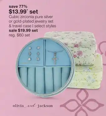 Cubic zirconia pure silver or gold-plated jewelry set & travel case Deal at JC Penney
