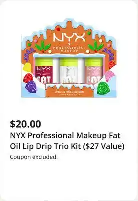 The price of NYX Professional Makeup Fat Oil Lip Drip Trio Kit ($27 Value) can be found at the top of the page, together with the dates during which the offer is available. You can also check the price in the current JC Penney weekly ad or on the JC Penney website. Promotional offers assure you of buying JC Penney products at the lowest price.