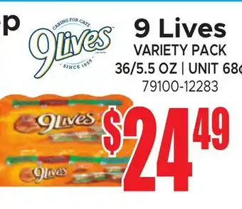 This offer is available in various stores, view all products to get the cheapest 9 Lives VARIETY PACK. If you'd like to find out whether this product has a bigger discount in another store, check the category 'Grocery'. You may also find these offers interesting: Wise Variety Pack, Seagram's Variety Pack & Crush VARIETY PACK.