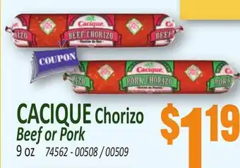CACIQUE Chorizo Beef or Pork offers and online specials, straight from the current Jetro ad