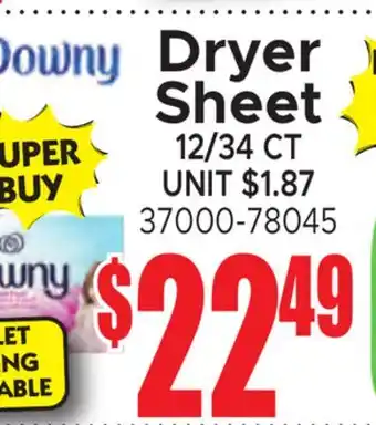 This offer is available in various stores, view all products to get the cheapest Downy Dryer Sheet. If you'd like to find out whether this product has a bigger discount in another store, check the category 'Grocery'. You may also find these offers interesting: Dryer Sheet, Bounce Dryer Sheets & 200-Count Dryer Sheets.