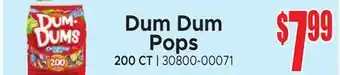 This offer is available in various stores, view all products to get the cheapest Dum Dum Pops. If you'd like to find out whether this product has a bigger discount in another store, check the category 'Grocery'. You may also find these offers interesting: Original Dum•Dums Pops, Dum Dums Original Pops & DUM DUMS LOLLIPOP SUPER MIX.