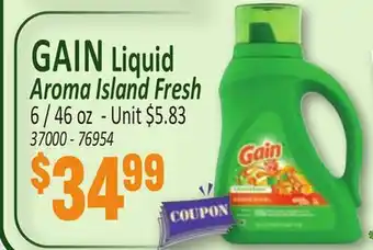 This offer is available in various stores, view all products to get the cheapest GAIN Liquid Aroma Island Fresh. If you'd like to find out whether this product has a bigger discount in another store, check the category 'Grocery'. You may also find these offers interesting: Gain Liquid Detergent, Gain Liquid Detergent & Gain + Aroma Boost Original Laundry Detergent 154 oz.