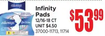 This offer is available in various stores, view all products to get the cheapest Infinity Pads. If you'd like to find out whether this product has a bigger discount in another store, check the category 'Grocery'. You may also find these offers interesting: Always Infinity or Radiant Pads, Always Infinity or Radiant Pads & Always Infinity or Radiant Pads.