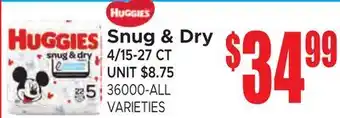 This offer is available in various stores, view all products to get the cheapest Snug & Dry. If you'd like to find out whether this product has a bigger discount in another store, check the category 'Grocery'. You may also find these offers interesting: Huggies Snug & Dry Diapers, Huggies Overnights or Snug & Dry Diapers & Huggies Little Movers or Snug & Dry Diapers.
