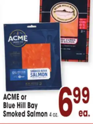 This offer is available in various stores, view all products to get the cheapest ACME or Blue Hill Bay Smoked Salmon. If you'd like to find out whether this product has a bigger discount in another store, check the category 'Grocery'. You may also find these offers interesting: Acme Smoked Salmon, Acme Smoked Nova Salmon 4 Oz. Pkg & Acme Smoked Fish.