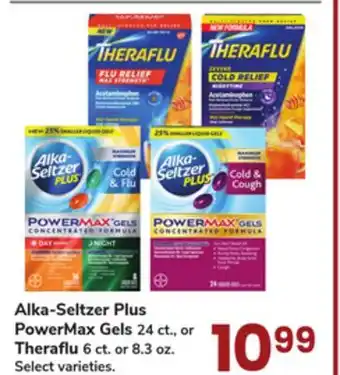 Alka-Seltzer Plus PowerMax Gels 24 ct., or Theraflu 6 ct. or 8.3 oz Deal at Jewel-Osco