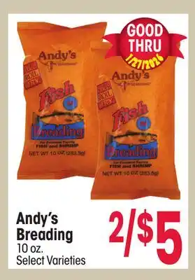 This offer is available in various stores, view all products to get the cheapest Andy's Breading. If you'd like to find out whether this product has a bigger discount in another store, check the category 'Grocery'. You may also find these offers interesting: Andy's Breading 10 oz. or Hormel Chili with 15 oz, offer 2 & offer 3.