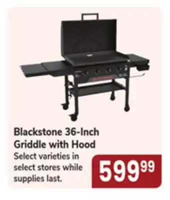 This offer is available in various stores, view all products to get the cheapest Blackstone 36-Inch Griddle with Hood. If you'd like to find out whether this product has a bigger discount in another store, check the category 'Grocery'. You may also find these offers interesting: Blackstone 28-Inch Griddle with Hood, Blackstone 28 in. Griddle & Blackstone 28 in. Griddle.