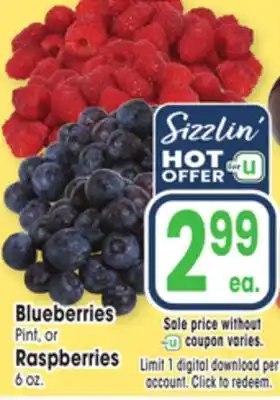 Blueberries Pint, or Raspberries 6 oz Discount at Jewel-Osco