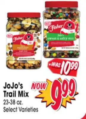 The JoJo's Trail Mix is available this week in the weekly ad of Jewel-Osco, with an attractive discount. On this page, you’ll find all the information about current promotional prices, terms of the promotion, and special discounts. Browse through the weekly ad and check out other offers and promotions related to JoJo's Trail Mix to ensure you get the best deal.The deal for JoJo's Trail Mix is valid in week 06 and can be found in the current weekly ad. Has the deal expired? No worries, you can always check other interesting offers in the weekly ad. You can also follow the product category to be immediately informed when JoJo's Trail Mix is back in the weekly ad of Jewel-Osco.