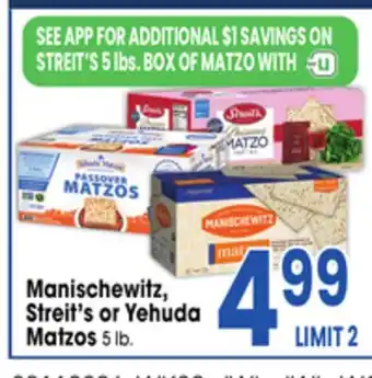 Manischewitz, Streit's or Yehuda Matzos Discount at Jewel-Osco