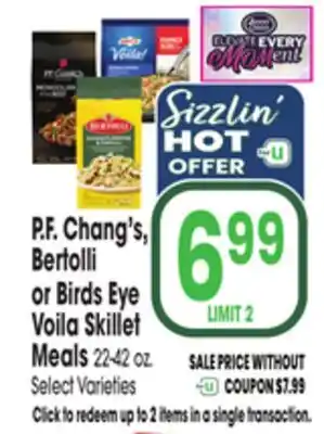 P.F. Chang's, Bertolli or Birds Eye Voila Skillet Meals deals and online offers from the current Jewel-Osco weekly ad