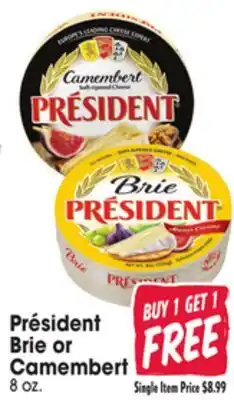 The price of Président Brie or Camembert can be found at the top of the page, together with the dates during which the offer is available. You can also check the price in the current Jewel-Osco weekly ad or on the Jewel-Osco website. Promotional offers assure you of buying Jewel-Osco products at the lowest price.