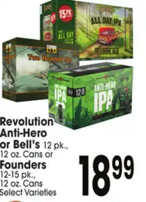 Revolution Anti-Hero or Bell's 12 pk., 12 oz. Cans or Founders 12-15 pk., 12 oz. Cans Discount at Jewel-Osco