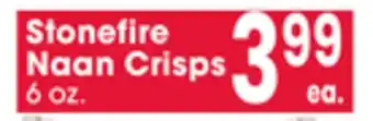 This offer is available in various stores, view all products to get the cheapest Stonefire Naan Crisps. If you'd like to find out whether this product has a bigger discount in another store, check the category 'Grocery'. You may also find these offers interesting: Stonefire Mini Naan, Stonefire NAAN, 8.8 Oz. Pkg & Stonefire NAAN Dippers 7.05 oz. or Sabra Hummus 10 oz. or Stacy's Pita Chips 6.75-7.33 oz.