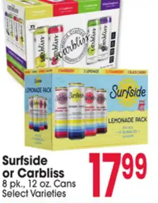 Jewel-Osco offers a wide collection of products, besides the Surfside or Carbliss. Keep an eye on the weekly Jewel-Osco weekly ad to find the best offers and promotions. Besides Surfside or Carbliss, you can also find the following offers: 8-Pack Surfside, 355ml. Cans, Budweiser, Miller, Coors, Surfside, Sun Cruiser & Boneless Pork Loin Chops or Roast.