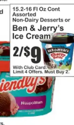 15.2-16 Fl Oz Cont Assorted Non-Dairy Desserts or Ben & Jerry's Ice Cream Discount at Key Food