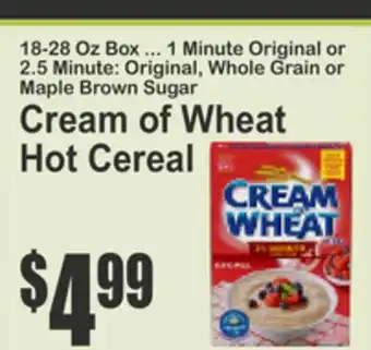 18-28 Oz Box ... 1 Minute Original, Whole Grain Maple Brown Sugar Cream of Wheat Hot Cereal deal in the weekly ad of Key Food