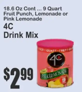 18.6 Oz Cont ... 9 Quart Fruit Punch, Lemonade or Pink Lemonade 4C Drink Mix offers and online specials, straight from the current Key Food ad