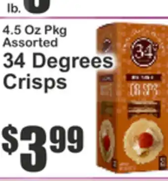 In which store will 4.5 Oz Pkg Assorted 34 Degrees Crisps be on sale next week? These are some of the questions we get asked a lot. It’s only normal, nobody likes to pay too much! Our team keeps an eye on all deals and lists them online as soon as possible. So you can customize your (shopping) list with this week's offers and those of next week. Make sure to check next week’s Key Food ad, some of the specials are only available next week or online.Frequently asked questions about 4.5 Oz Pkg Assorted 34 Degrees Crisps