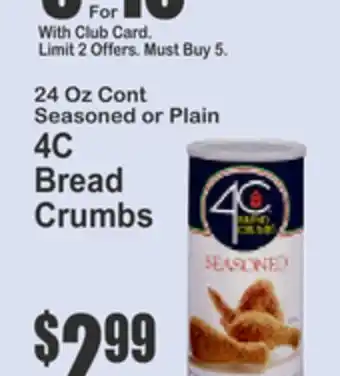 Key Food offers a wide collection of products, besides the 4 Oz Cont Seasoned or Plain BC Bread Crumbs. Keep an eye on the weekly Key Food circular to find the best offers and promotions. Besides 4 Oz Cont Seasoned or Plain BC Bread Crumbs, you can also find the following offers: 4C SEASONED BREAD CRUMBS, 4C SEASONED BREAD CRUMBS & Bread Crumbs.