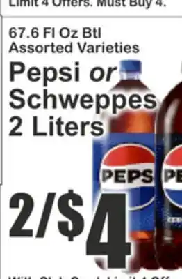 67.6 FL Oz Btl Assorted Varieties Pepsi or Schweppes Discount at Key Food